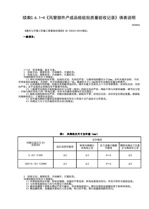 表格名称:060802 风管部件产成品检验批质量验收记录