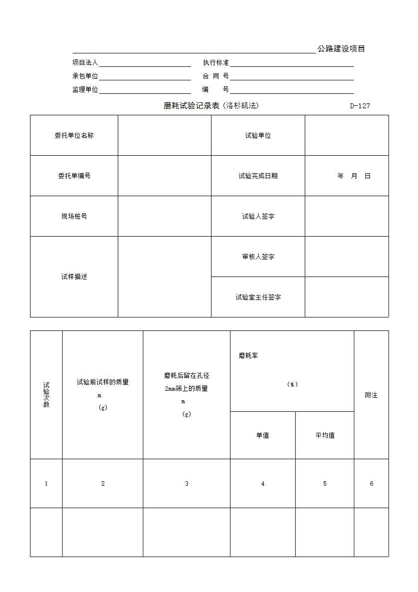 表格名称:D-127 磨耗试验记录表(洛杉矶法)
