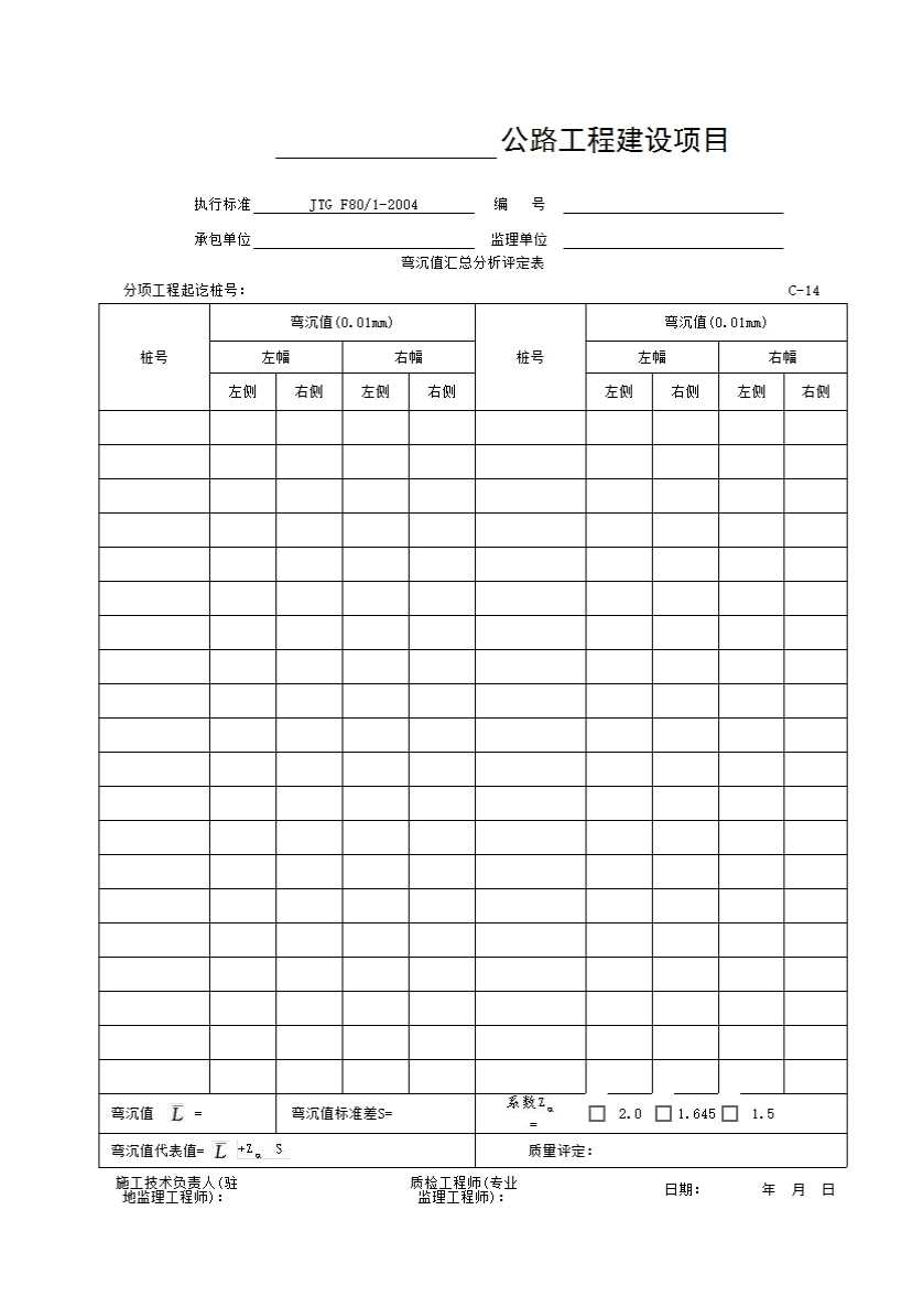 表格名称:C-14表 弯沉值汇总分析评定表