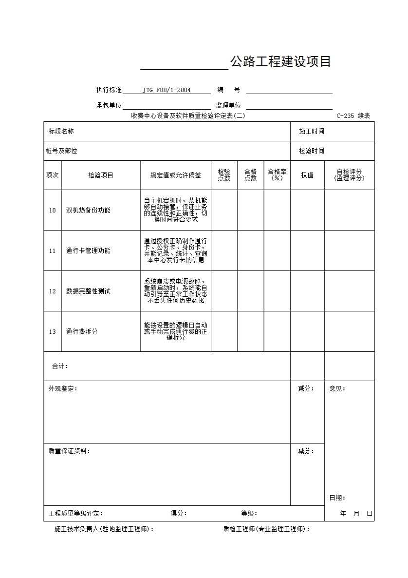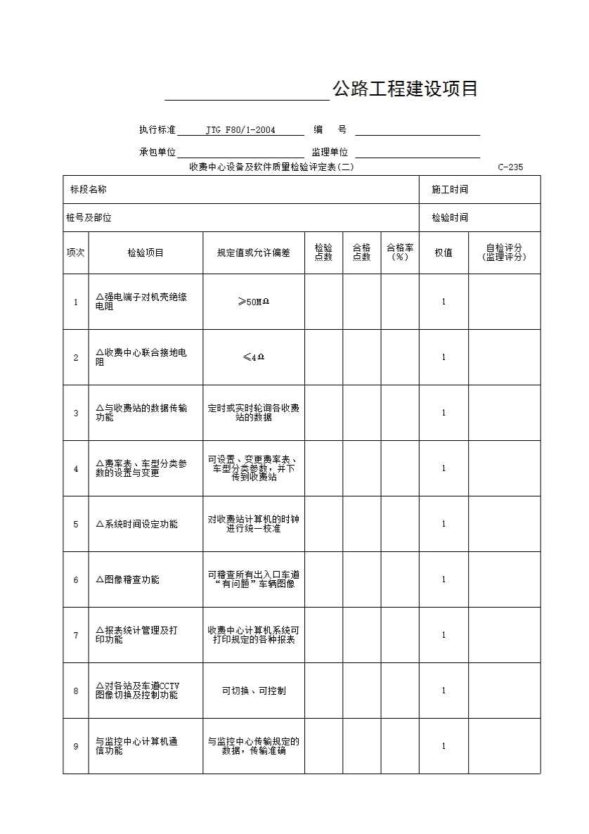 C-235表 收费中心设备及软件质量检验评定表(二)