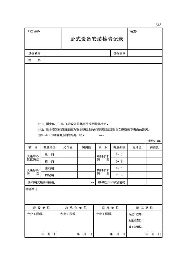 B48 卧式设备安装检验记录