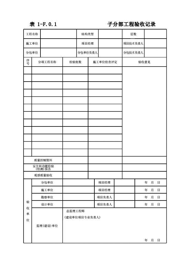 YB 4147-2006 冶金建筑工程施工质量验收表