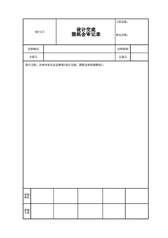 表格名称:HA-113 设计交底图纸会审记录