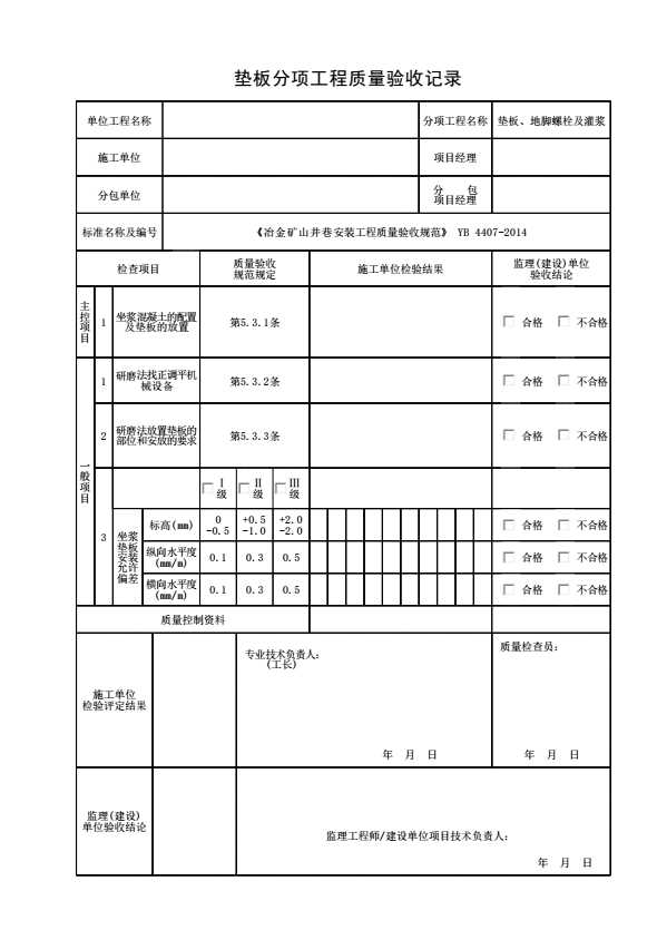 YB 4407-2014 冶金矿山井巷安装工程质里验收规范