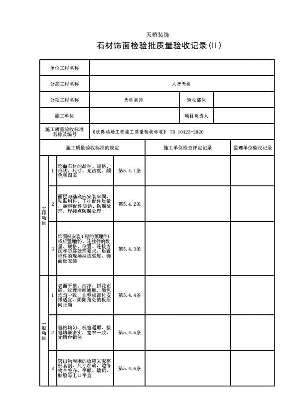 【天桥装饰】石材饰面检验批质量验收记录(Ⅱ)
