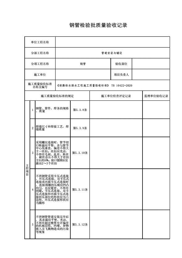 《铁路给水排水工程施工质量验收标准》(TB 10422-2020)