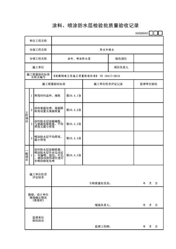 表格名称:04020603 涂料、喷涂防水层检验批质量验收记录