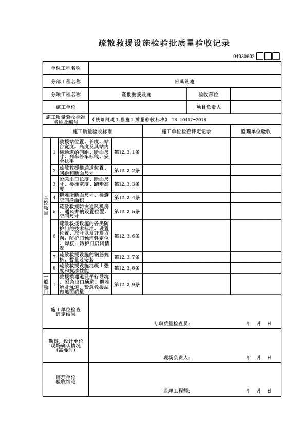表格名称:04030602 疏散救援设施检验批质量验收记录