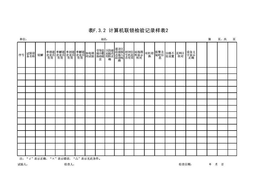 表格名称:表F.3.2 计算机联锁检验记录样表2