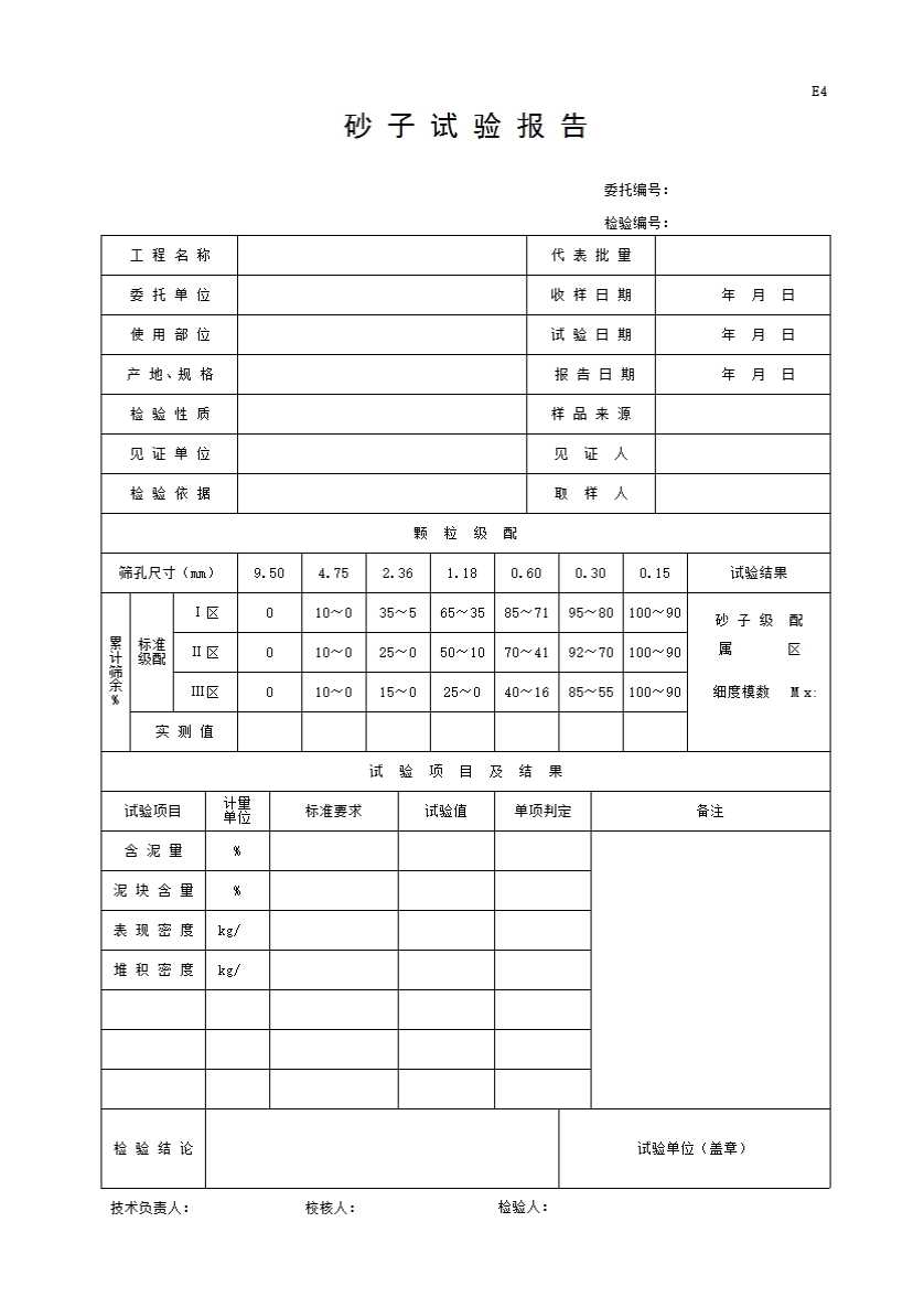 E类 原材料、半成品、构配件、设备进场检验及复检用表