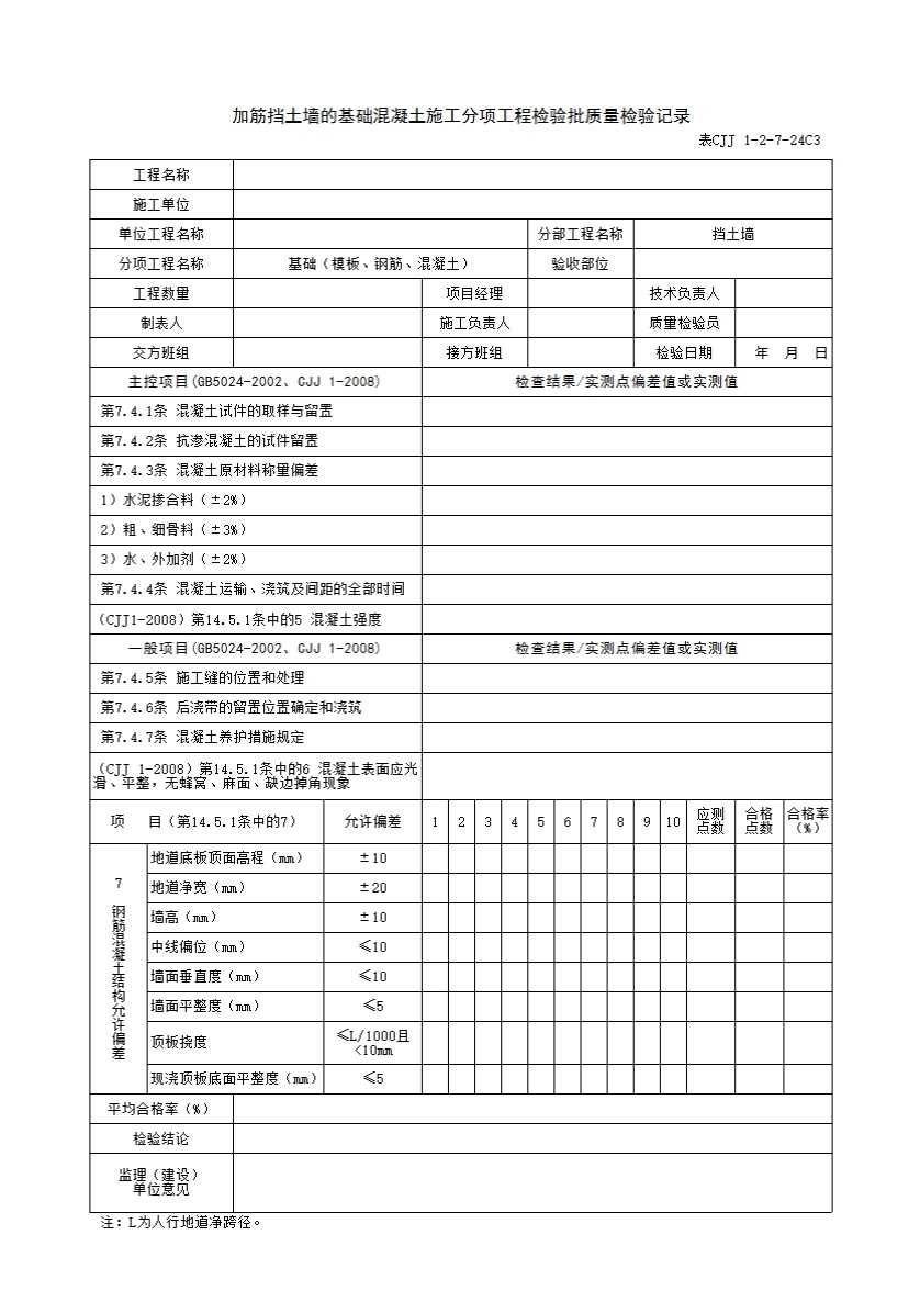 表CJJ 1-2-7-24C3 加筋挡土墙的基础混凝土施工分项工程检验批质量检验记录