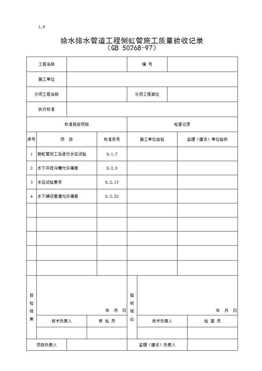 1.8 给水排水管道工程倒虹管施工质量验收记录