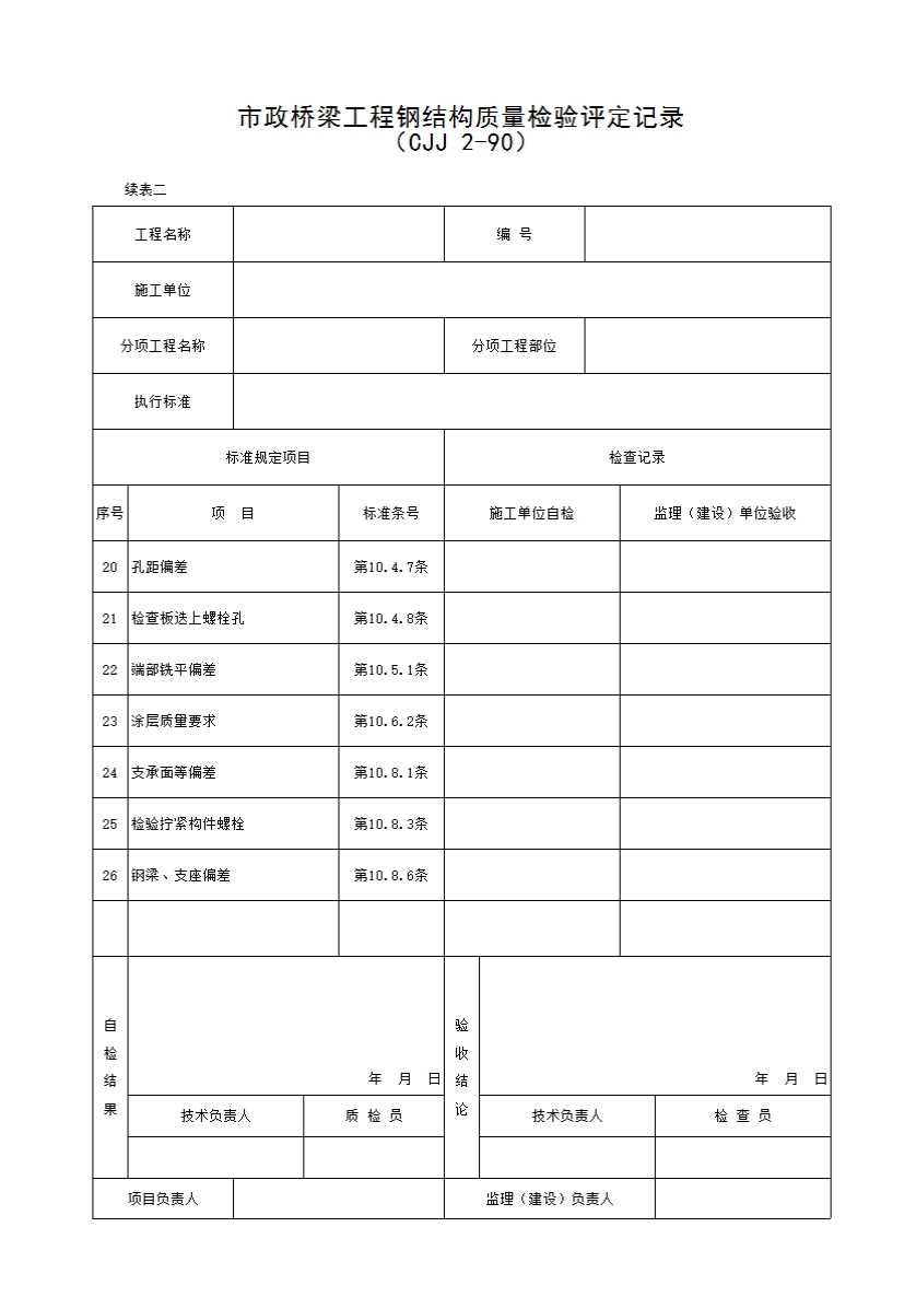 8.11 市政桥梁工程钢结构质量检验评定记录(续表二)