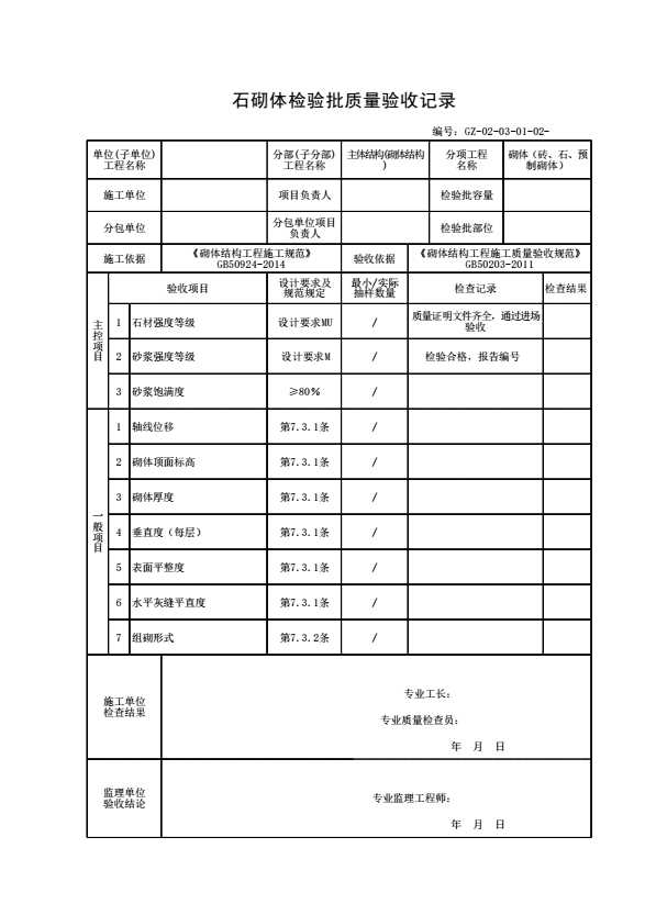 石砌体检验批质量验收记录