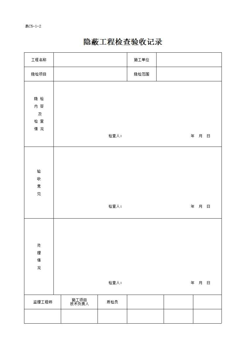 表格名称:隐蔽工程检查验收记录