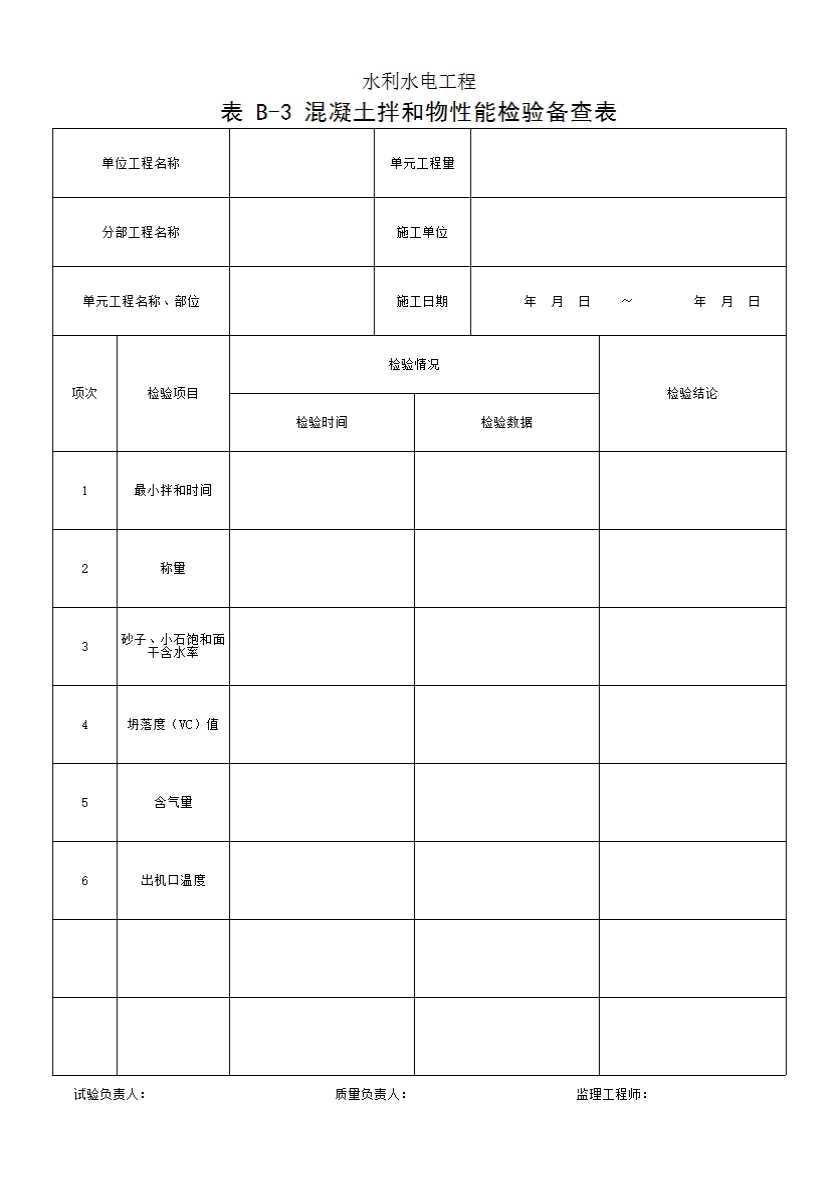 表格名称:表 B-3 混凝土拌和物性能检验备查表