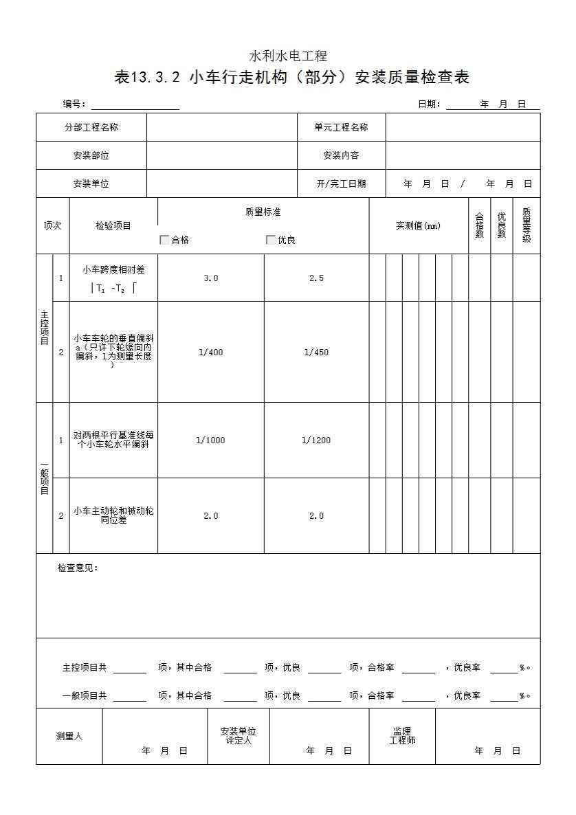 表格名称:表13.3.2 小车行走机构(部分)安装质量检查表