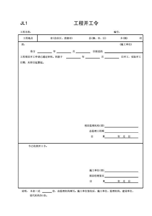 表格名称:JL1 工程开工令