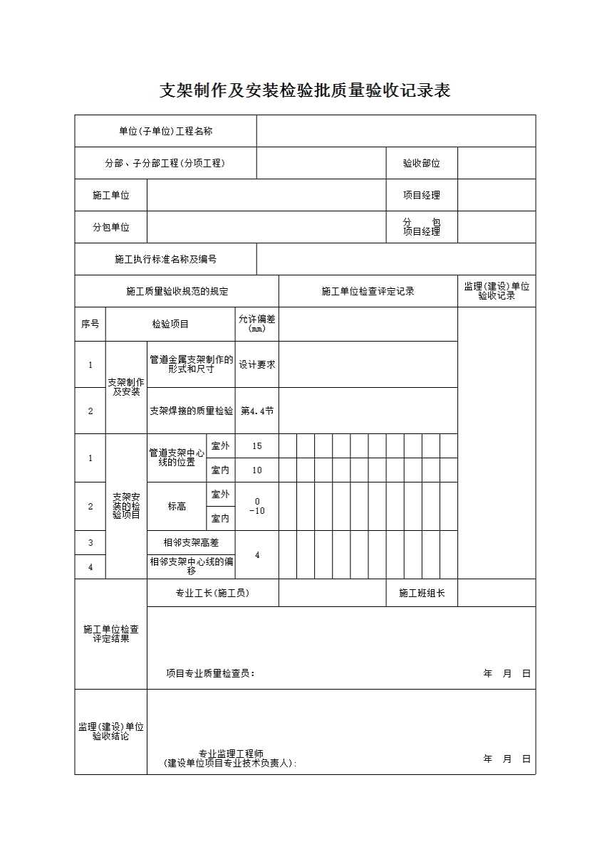 9.3.1 管道金属支架制作的型式和尺寸应满足设计要求, 支架安装面与支承面应平整, 不得有明显扭曲和变形。 检验数量和方法