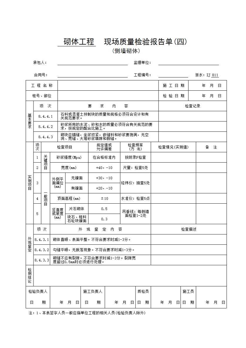 浙水:ZJ811 砌体工程现场质量检验报告单(四)