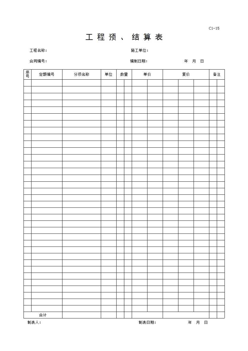 c1—15工程预、结算表