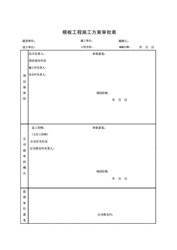 表格名称:模板工程施工方案审批表