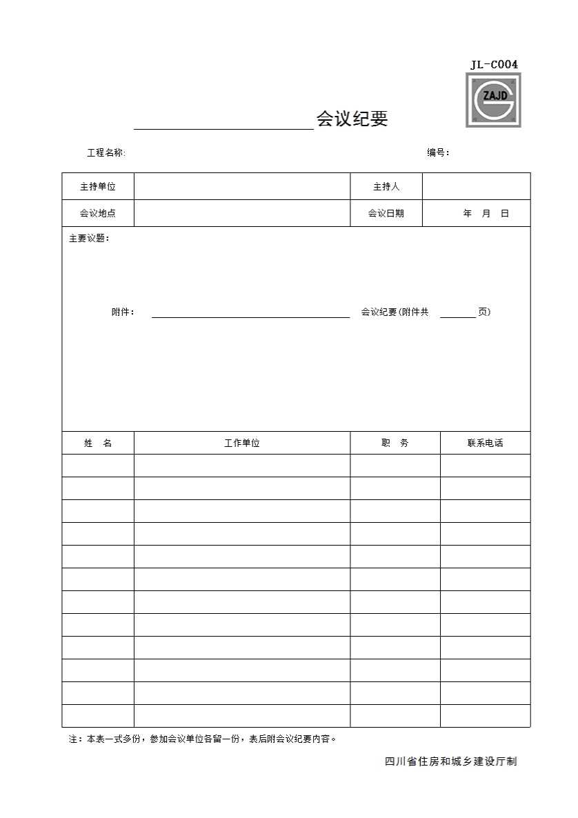 监理单位及相关单位用表(DBJ51-T060-2016)