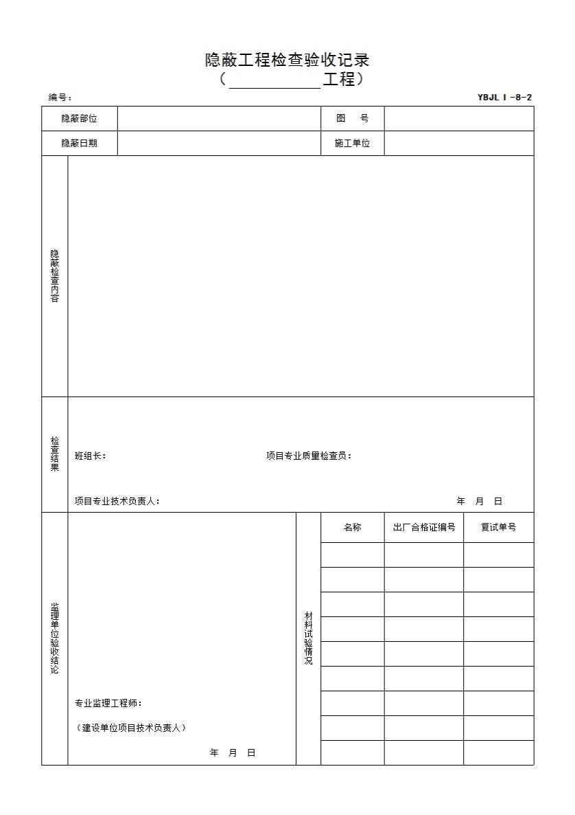 1 隐蔽工程记录
