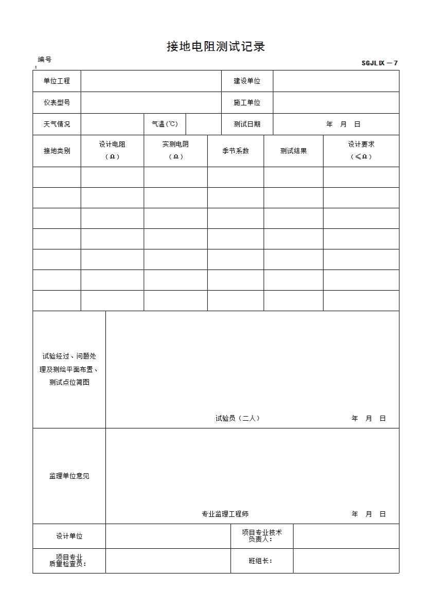表格名称:接地电阻测试记录