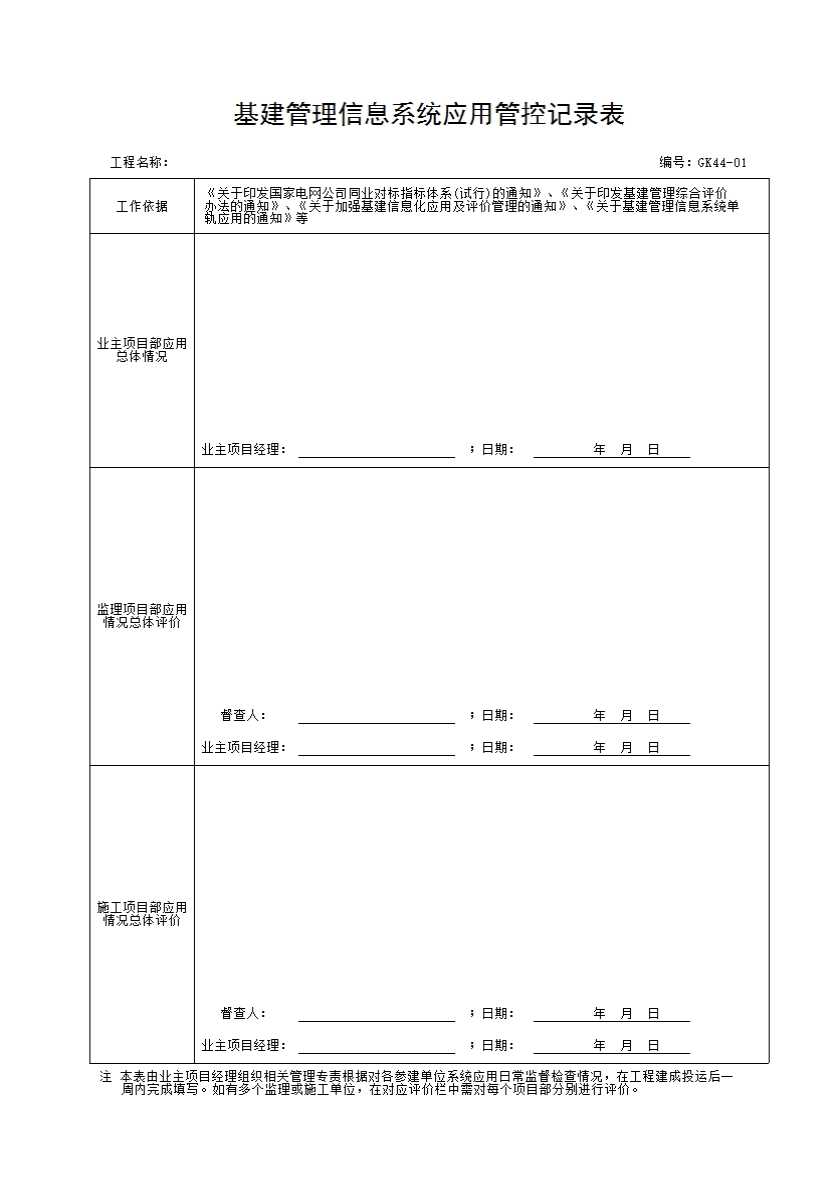 表格名称:基建管理信息系统应用管控记录表