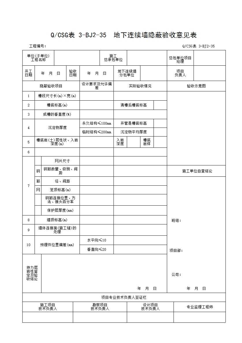 QCSG 表 3-BJ2-35 地下连续墙隐蔽验收意见表