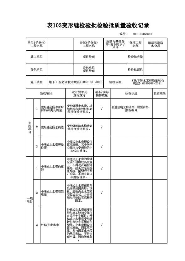 表格名称:130101070202 变形缝检验批检验批质量验收记录