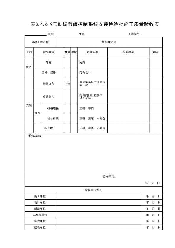 表格名称:表3.4.6-9 气动调节阀控制系统安装检验批施工质量验收表