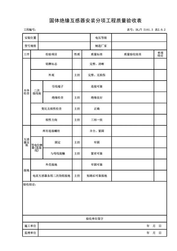 表格名称:表2.0.2 固体绝缘互感器安装分项工程质量验收表