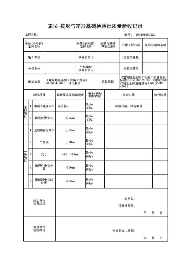 表格名称:100201060320 筏形与箱形基础检验批质量验收记录