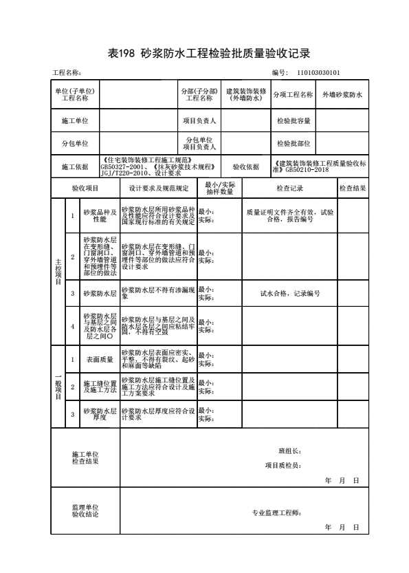 表格名称:110103030101 砂浆防水工程检验批质量验收记录