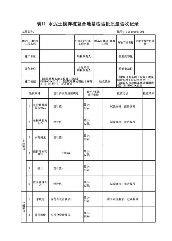 表格名称:110401031001 水泥土搅拌桩复合地基检验批质量验收记录
