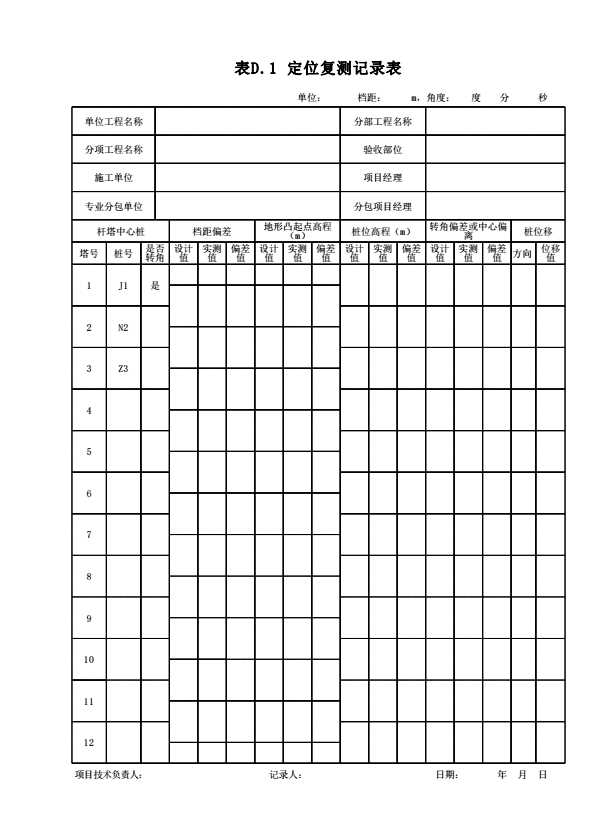 表格名称:表D.1 定位复测记录表