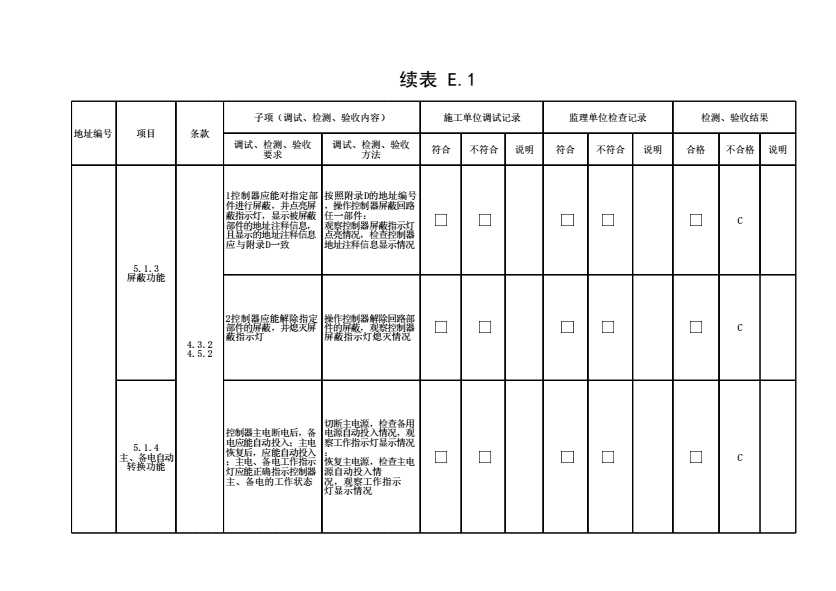 表E.1 火灾报警控制器、消防联动控制器、火灾报警控制器(联动型)及其现场配接部件调试、检测、验收记录(续表8)