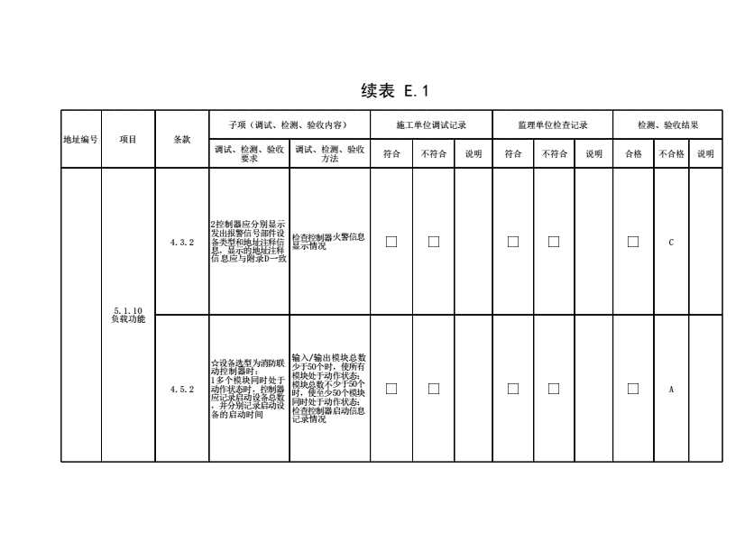 表格名称:表E.1 火灾报警控制器、消防联动控制器、火灾报警控制器(联动型)及其现场配接部件调试、检测、验收记录(续表13)