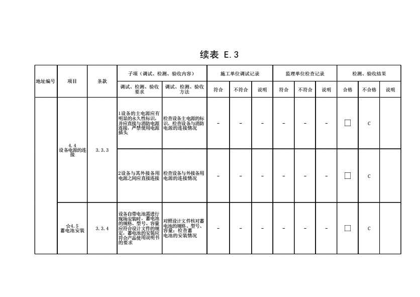 表格名称:表E.3 消防专用电话系统调试、检测、验收记录(续表4)