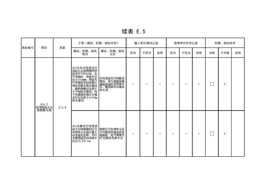 表格名称:表E.5 电气火灾监控系统调试、检测、验收记录(续表13)