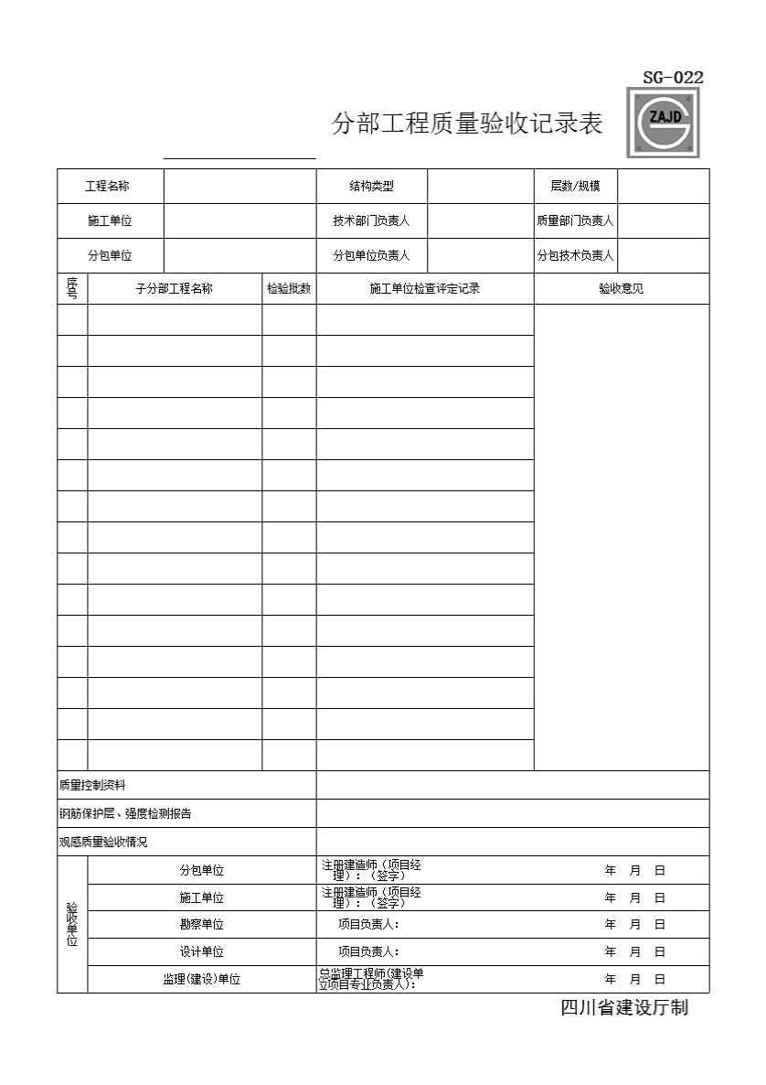 施工单位土建安装用表-检验批(用于自动生成分项子分部及分部)