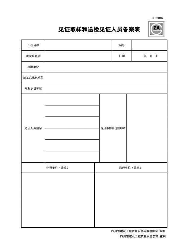 表格名称:JL-B015 见证取样和送检见证人员备案表