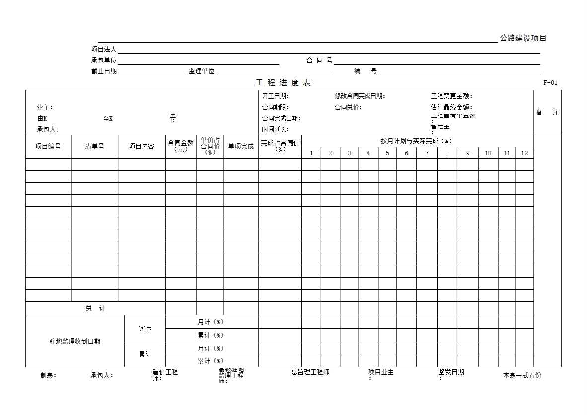 表格名称:F-01 工 程 进 度 表