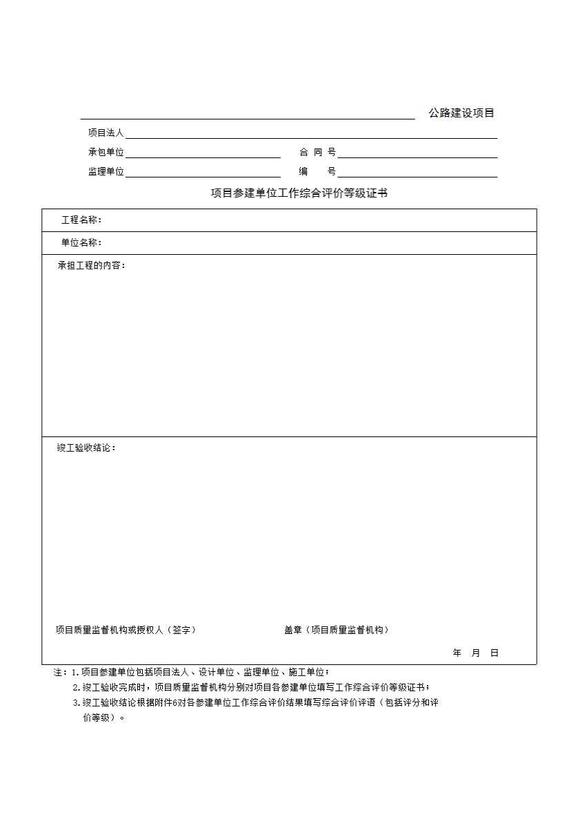 表格名称:J-19项目参建单位工作综合评价等级证书