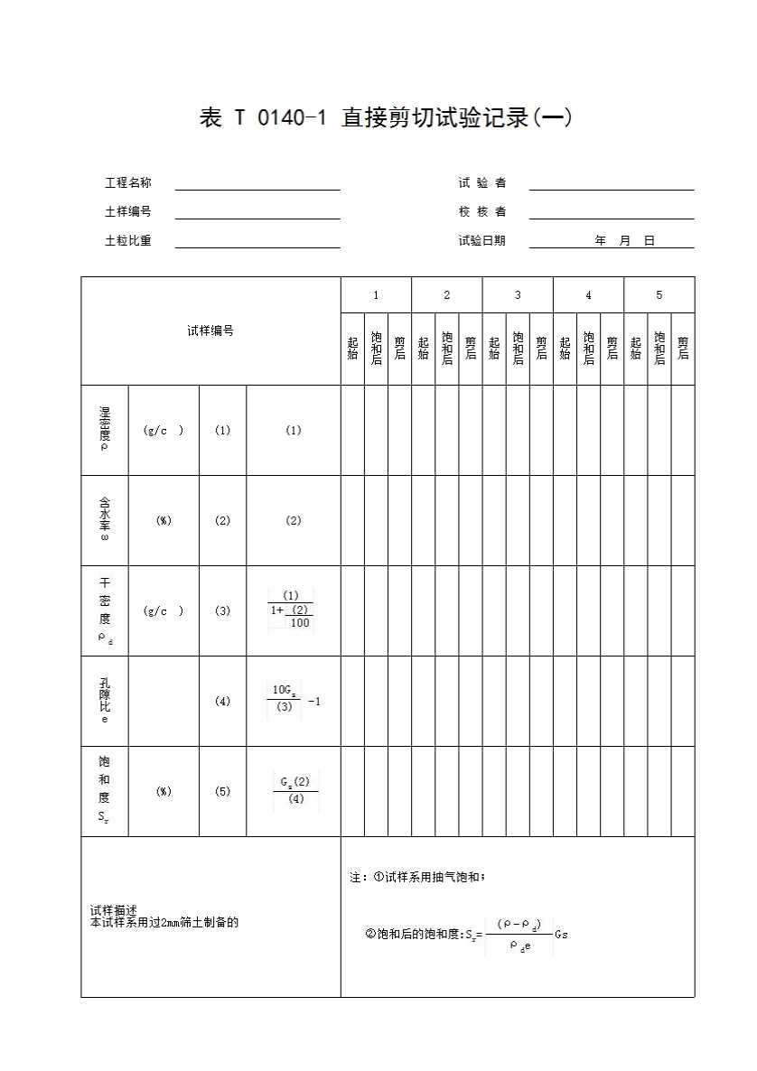 表格名称:表T0140-1 直接剪切试验记录(一)