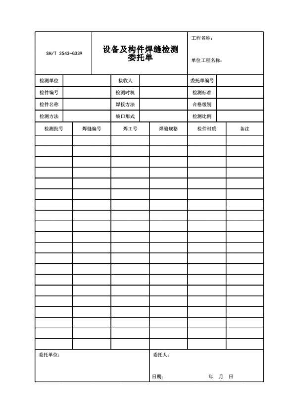 SH/T 3543-G339 设备及构件焊缝检测委托单