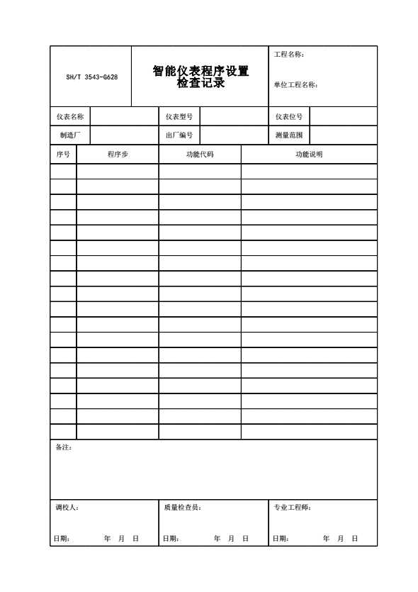 表格名称:SH/T 3543-G628 智能仪表程序设置检查记录