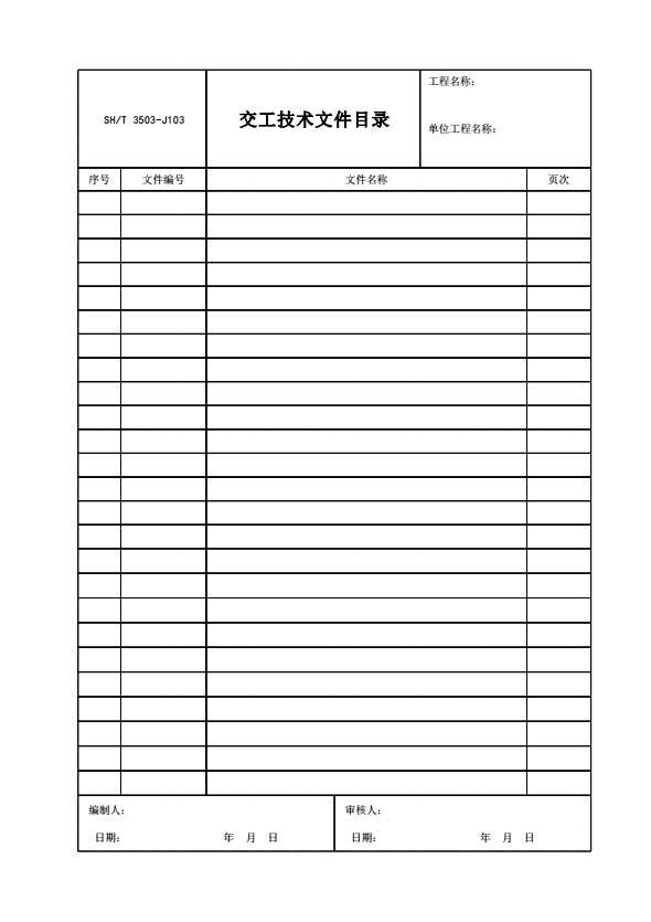表格名称:SH/T 3503-J103 交工技术文件目录